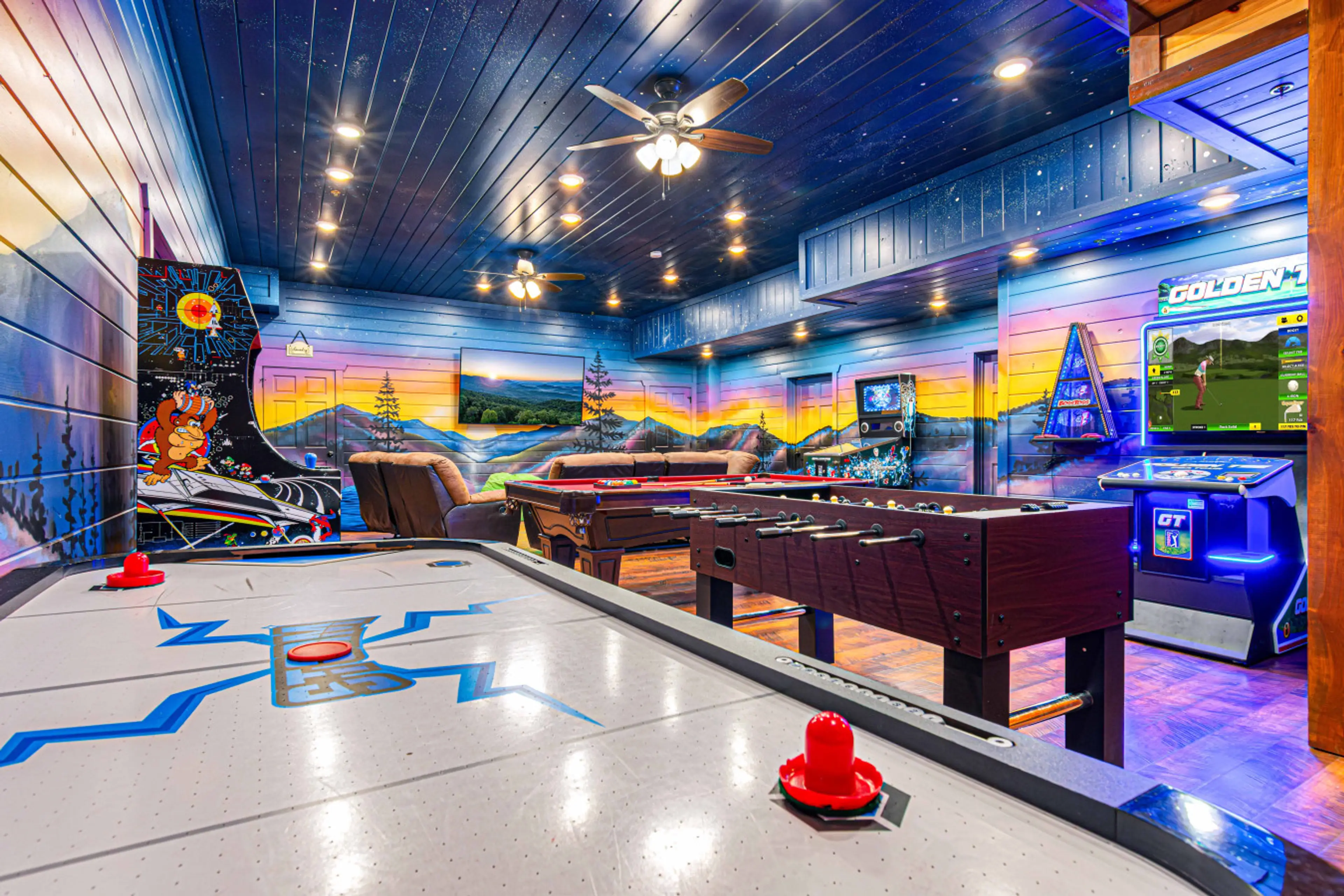 Welcome to MOUNTAIN ESCAPE LODGE! Over 6000 SF! ***8 Bedrooms/ 9 Baths! ***EACH BEDROOM HAS ITS OWN FULL BATHROOM! ***PRIVATE INDOOR HEATED POOL ***PRIVATE 1000 SF COVERED GAZEBO w/ OUTDOOR FIREPLACE and Entertainment Area ***HUGE GAME ROOM w/ FULL SIZE GOLDEN TEE ARCADE VERSION w/ 85” TV Theatre ...